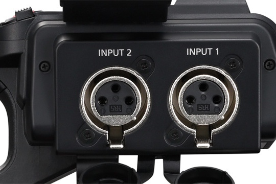 Видеокамера поддерживает профессиональную запись звука с фантомным питанием +48 В, а также микрофонные и линейные входы. Она оснащена двумя входами XLR с регулятором громкости и возможностью записи 24-битного линейного PCM-аудио с профессионального микрофона.